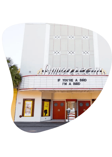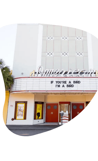 The wedding entrance will be through the ticket booth at The American Theater! There will be a pre-show in the theater before the ceremony begins, so please arrive on time.
